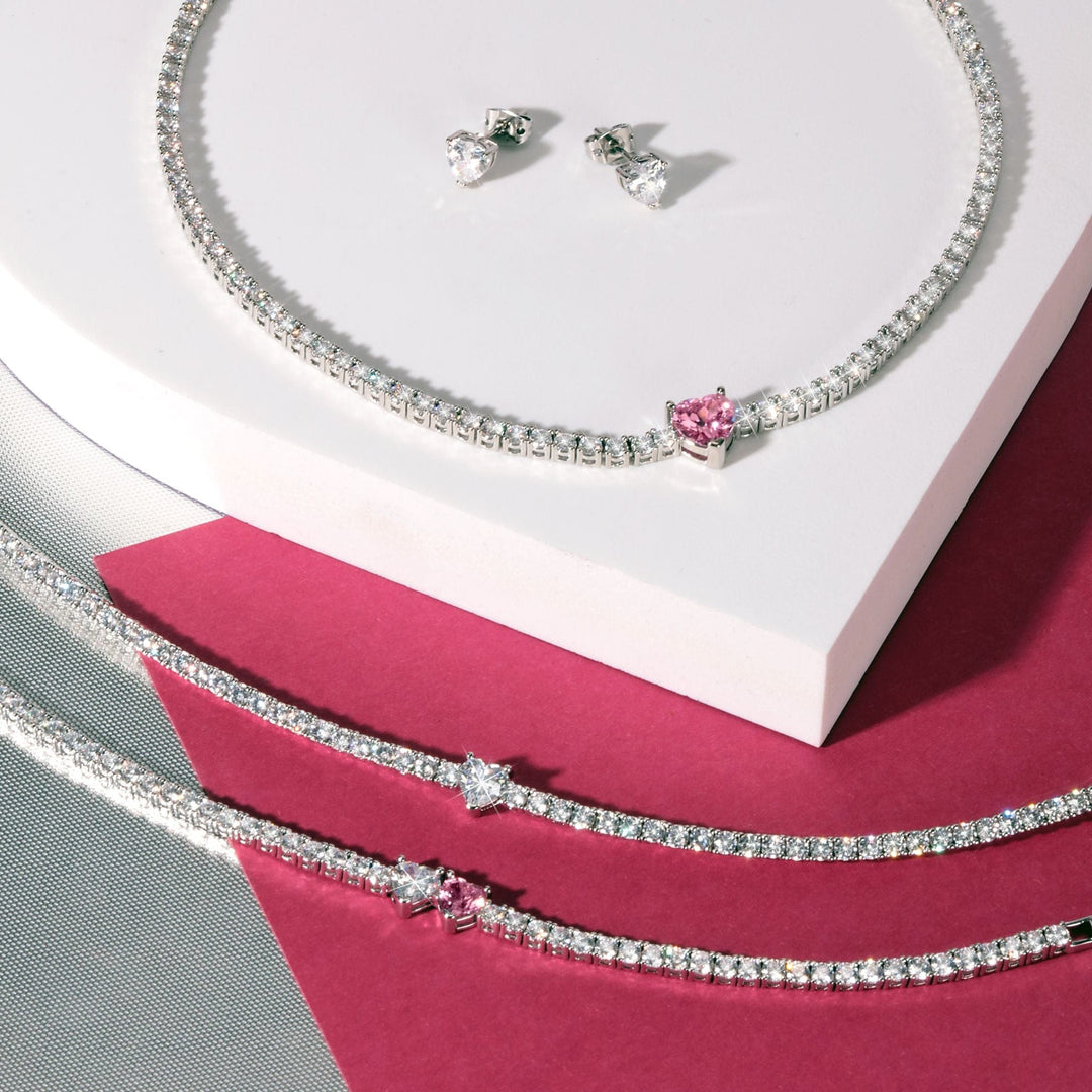 Material: Metal Finish: Rhodium Plated Stones: Cubic Zirconia Shape: Heart