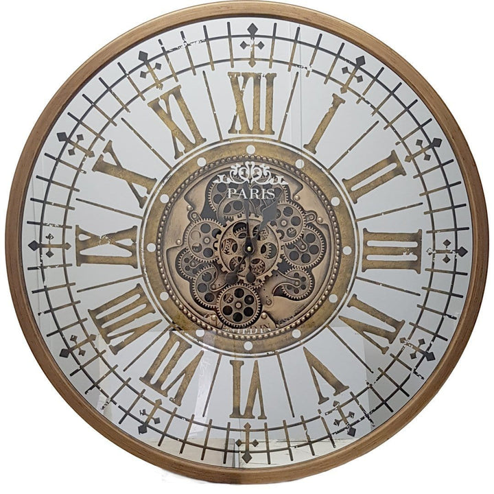 Chilli Wall Clock Round 80cm mirrored Paris moving cogs wall clock - Gold Brand
