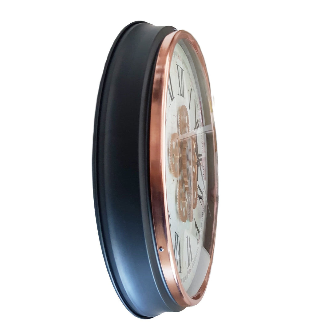 - Domonique moving cogs wall clock - Rose Gold Copper w/ Black.