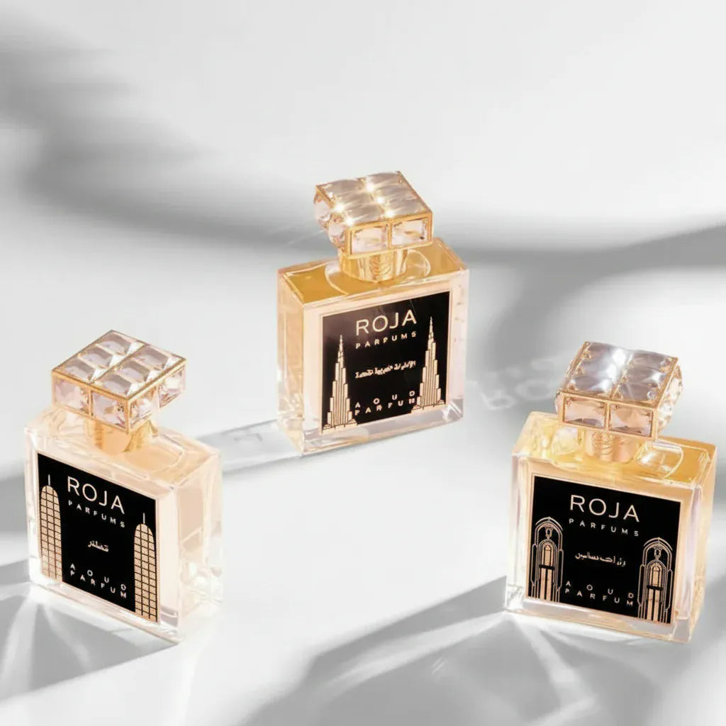 Roja United Arab Emirates Extrait de Parfum by Roja Parfums is an opulent unisex creation inspired by Middle Eastern grandeur. Luminous citrus lifts a heart of saffron rose and jasmine over an ambery base of oud woods and resins. Rich sensual and long lasting, it envelops the skin in a luxurious aura from day to night.