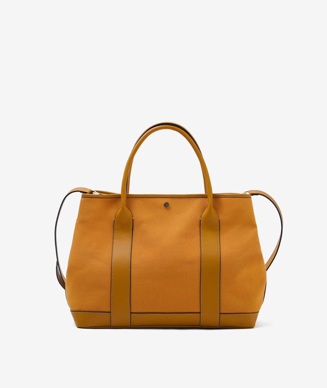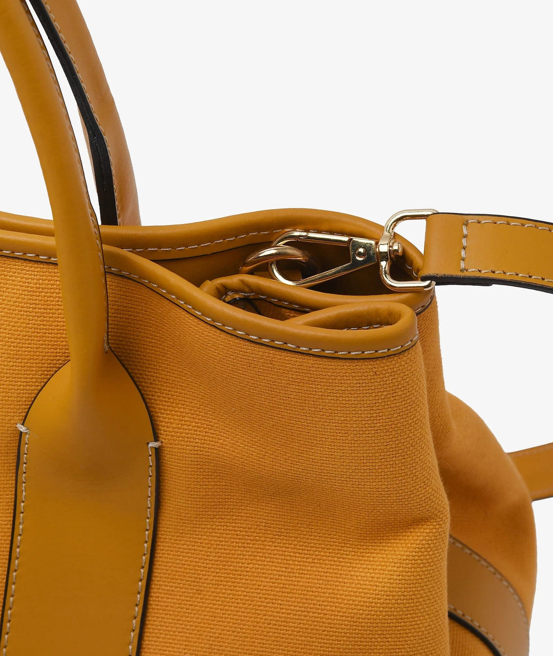 The Ale Large handbag from the SS25 summer collection is an icon of elegance and practicality, reinterpreted in a version with a strong character. Made of durable mustard-colored deltor fabric, it is embellished with tan-colored cowhide details that enhance its refined and timeless design. The warm and sophisticated color combination makes this accessory perfect for any occasion, from everyday life to weekends out of town.